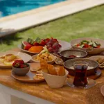 Der Tag im Fora Bella Alaçatı beginnt mit einem kostenlosen einfachen Frühstück. Sie können im Restaurant Deniz Pide Alacati in etwa 5 Gehminuten Entfernung vom Hotel lecker essen.